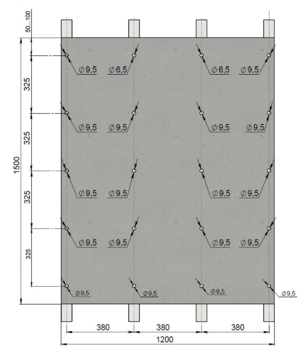 Пример расположения монтажных отверстий на листе 1200х600х8 мм.