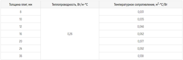 | Коэффициент теплопроводности, Вт/(м·К) | 0,26 |