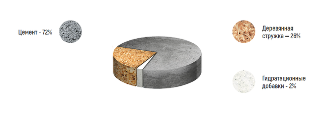 Плита ЦСП является твердым монолитным материалом. Выделение пыли, газов и паров из плит невозможно в связи с минерализацией содержащихся веществ и применяемой технологии производства. Плиты изготавливаются путем прессования отформованной смеси, состоящей из стружки древесины хвойных пород, портландцемента, минеральных веществ и воды. Высокое качество ЦСП обеспечивается строгим контролем качества в соответствии с ГОСТ 26816-2016 (ЦСП-1 высшее качество) и европейским стандартом EN 634-2.