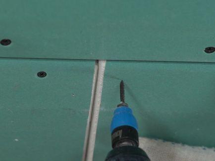 Важно: в местах стыков листов, а также по периметру системы, в местах прилегания гипсокартона к смежным поверхностям (через выступающие из под профиля ПН участки демпферной ленты), должен оставляться небольшой зазор (около 2-3 мм) для последующего заполнения герметиком.